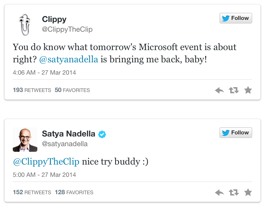 Hey look, a Microsoft CEO with a sense of humor! pic.twitter.com/9OfWzwVAnY